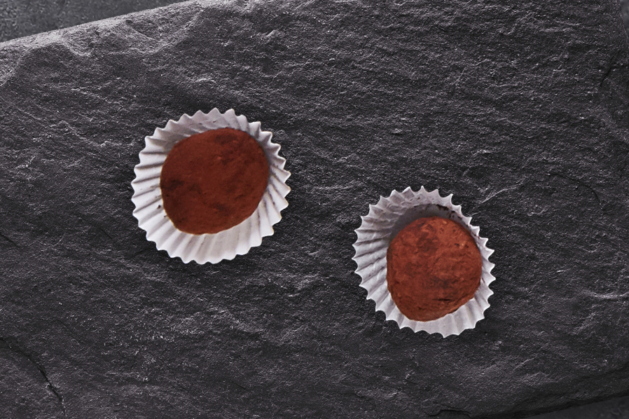 Qora shokolad, qaymoq, apelsin sharbati, sariyog ', Kuantro likyori, kakao.